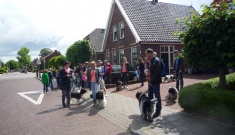 Het uitlaten deden we soms apart, anders hebben ze helemaal geen interesse meer voor wat ze moeten doen, nu we langzamerhand ook met Loki iets verder kunnen lopen wordt ook dat steeds beter. Loki kan zwemmen, ze heeft inmiddels drie keer in de vijver gelegen. Ze schijnt het niet te (willen) leren en wat neemt zo'n vacht dan veel water op zeg. We hebben het nog nooit echt zien gebeuren, alleen het weer uit klimmen is waargenomen. We vermoeden dat ze probeert naar de vissen te happen!