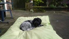 De kleinkinderen zijn dol op Jette, springt bank op, bank af, en rent graag achter 'Luna' aan! Kliendochter 'Cicille' vindt het eigenlijk wel erg jammer dat je de ogen van Jette niet goed kunt zien door het lange haar. Een strikje voor zo'n 'meisje' kan uitkomst bieden!!! Ze vond het een goed idee!